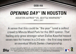 Opening Day is another insert set that is appropriate for this brand. It features an overhead shot of the stadium from last year's festivities. However, oddly enough, it is a 20-card set when in reality it should be only 15. I haven't really looked into the full set yet, but I'm guessing they have some home openers in addition to actual opening day.
